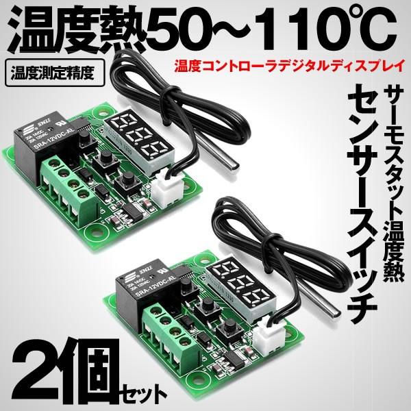 温度センサースイッチ2個セット サーモスタット W1209 DC 12V 温度熱 測定 高精度 温度センサー 温度スイッチ センサー 50〜110℃ 温度 2-W1209TT