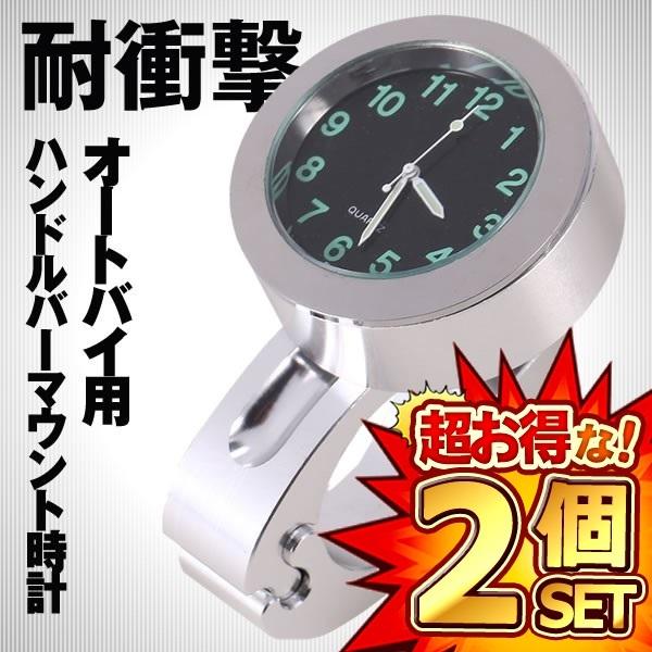 2個セット バイク 時計 アナログ時計 オートバイ ツーリング バイク用品 ハンドルバー シルバー 防水 耐衝撃 ボタン電池 取付簡単 レンチ付き バイクアクセサリ OTOHAVA