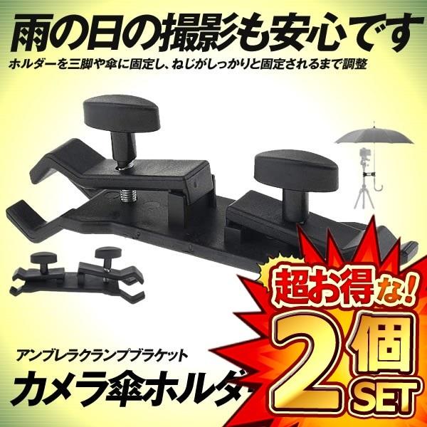 2セット カメラ 傘ホルダー 三脚 クリップ アンブレラクランプブラケット マウントホルダー 集合写真 照明スタンド用 一眼レフ デジタルカメラ スマホ 浸水防止 豪雨 KASAHUGU