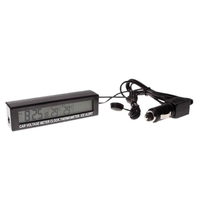 電圧計 デジタル バッテリーチェッカー 時計 温度計 シガーソケット 車内 屋外 車 クロック 時間 カスタム ドレスアップ 車内 内装 パネル 簡単設置 温湿度 DEASHANA