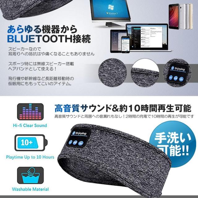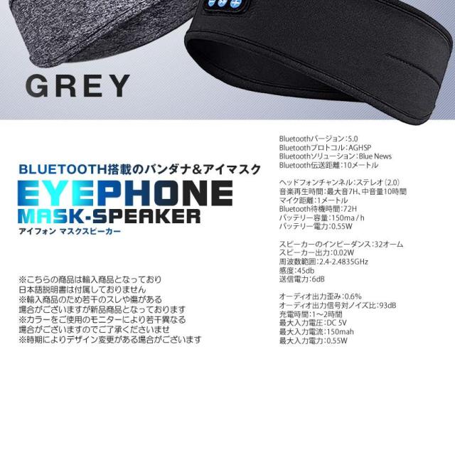 ワイヤレススピーカー Bluetooth5.0 アイマスク 睡眠 スポーツ ジム 運動 スリープスピーカー ヘッドホン スマホ スピーカー ワイヤレス バンダナ IMATOOTH-GY
