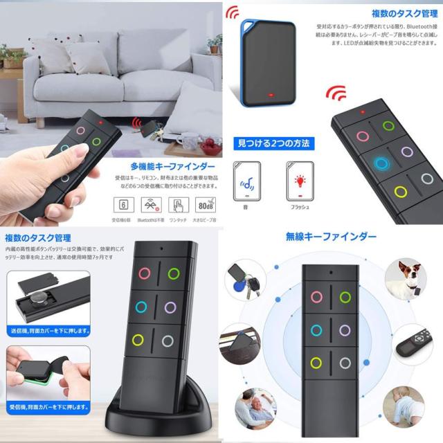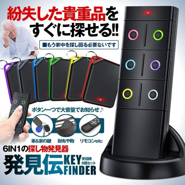 探し物発見器 忘れ物探知機 キーファインダー 6in1 小型 キーリング付き 落し物防止 忘れ物防止 探す アラーム 置き忘れ 鍵 キー 紛失防止 音の出る 使用 SINHAKED