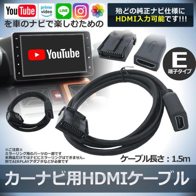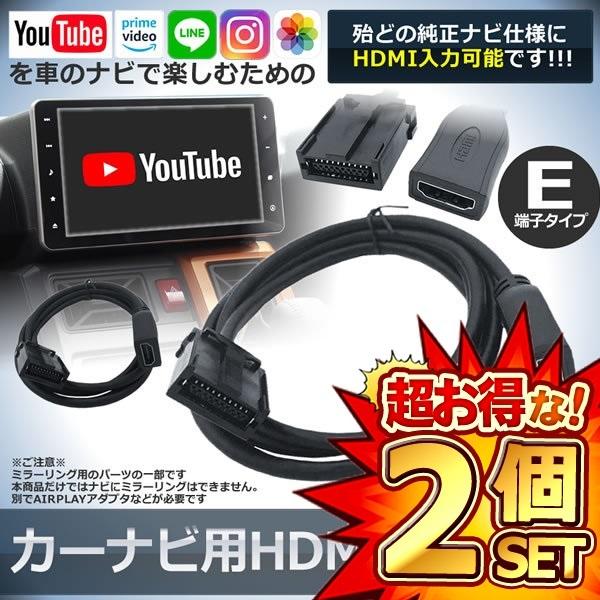 2個セット 車 カーナビ用 HDMIケーブル Eタイプ 1.5m トヨタ ホンダ ギャザズ 三菱 日産 ダイハツ 純正ナビ等 ミラーリング 映像 出力 スマホ カー用品 NAVIMIRARI