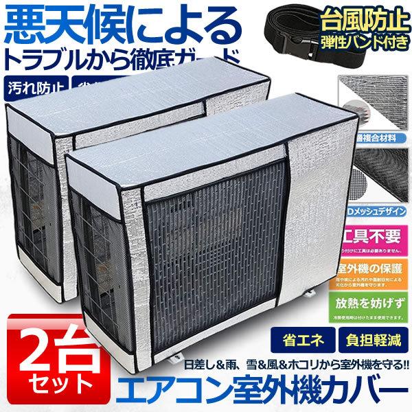 2個セット 室外機カバー エアコン アルミ 保護カバー 日光 雨 雪 風 ホコリ 遮熱保護 劣化防止 省エネ エコカバー 簡単設置 汚れ防止 バンド付き 遮熱 節電 エアコンカバー EACCBB