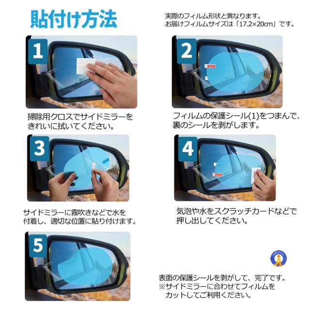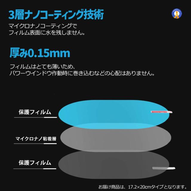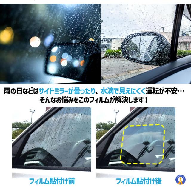 4枚セット ドアミラーフィルム ナノコーティング 撥水 車 高光透過 防水 疎油 曇り止め 摩擦防止 光反射防止 グレア防止 防塵 高透過 ドアウィンドウ 窓ガラス 2-NONOMIRA