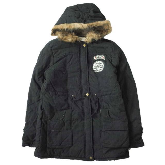 新品 no brand ノーブランド ファー付き フーデッドコート M ブラック 裏ボア アウター