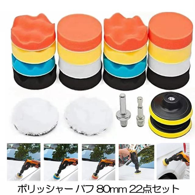 電気ドリル インパクトドライバー用 スポンジ ポリッシャー バフ 80mm 六角軸付き 洗車 車磨き 研磨 艶出し 塗装 仕上げ 水垢 磨く 光沢 tec-dorispo22