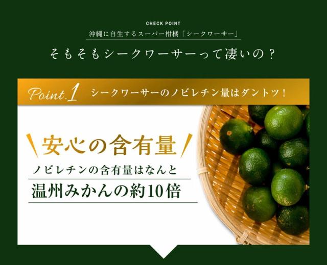 | 商品説明 | ノビレチンを集中補給。沖縄産シークヮーサーを使用。 毎日、シークヮーサージュースが飲めない方にもオススメ。 |