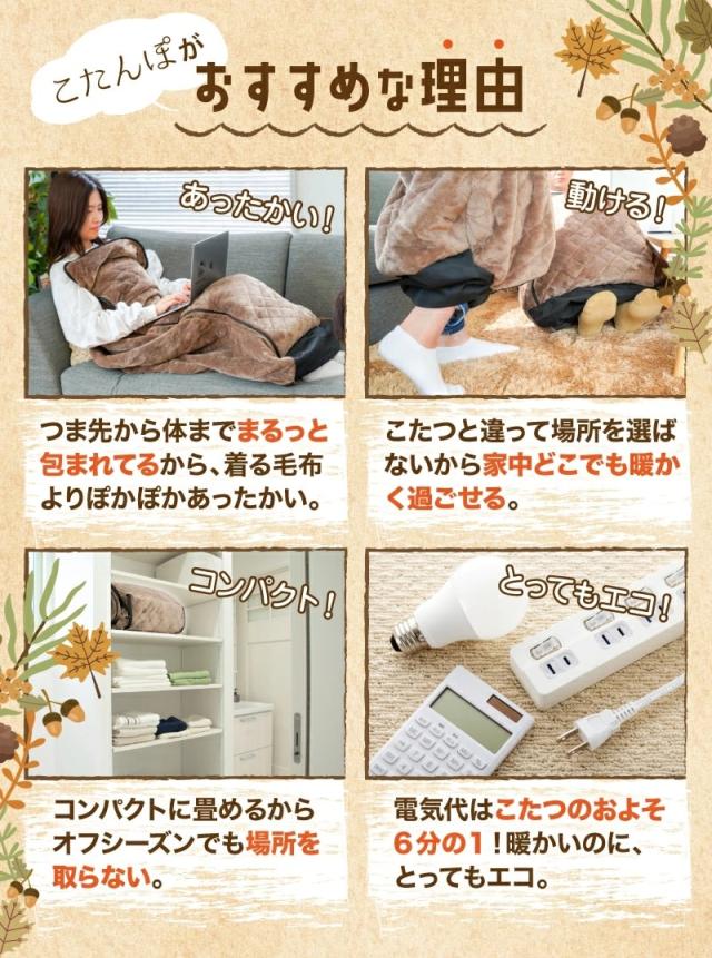 【送料無料】こたんぽ【正規品】足元まで全身ぽかぽかの着るこたつ♪ 着るこたつ 着る毛布 電気毛布 ロング丈 1人用 一人用 一人暮らし あったかグッズ 電気
