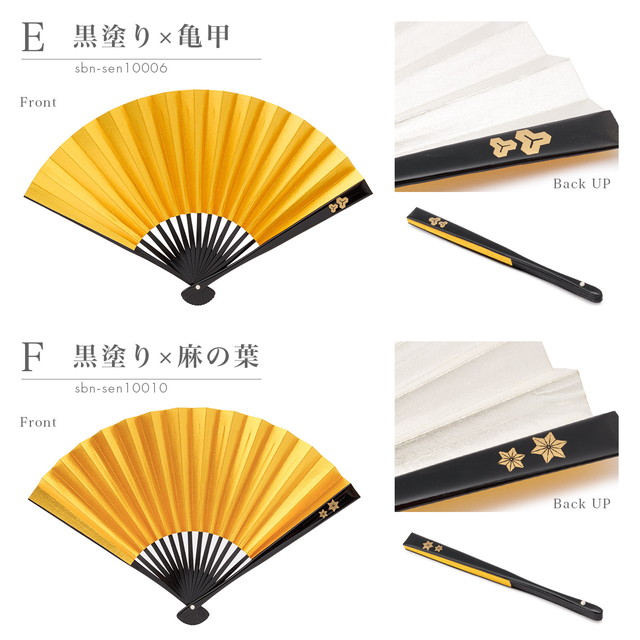 黒や溜塗りの親骨には、蒔絵調の絵が描かれています。