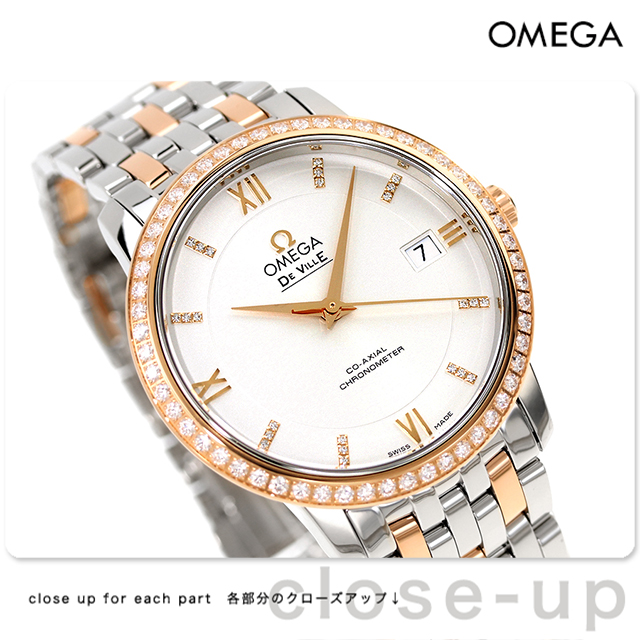 5年保証キャンペーン オメガ デビル プレステージ 37mm ダイヤモンド スイス製 自動巻き メンズ 腕時計 424.25.37.20.52.001 OMEGA VILLE PRESTIGE アナログ シルバー レッドゴールド ◆オメガは1848年、ルイ・ブランがスイスに時計工房を創設したことから始まります。1894年に発表した懐中時計のムーブメント、「Ω(オメガ/達成と極致の意)」という言葉を正式な社名として採用しました。 デ・ヴィル (DE VILLE)はフランス語で「都会」という意味をもちます。1960年、デヴィルは「 シーマスター デ・ヴィル 」として、 シーマスター ラインの一つとして登場しました。流行を先取りしたスタイルやエレガントなデザインが魅力です。ローマ数字とダイヤモンドのインデックスが特徴。3時位置に配置した日付表示など実用性も確保しています。パーツの摩耗を最小限に抑えて耐久性を上げる事により、オーバーホールの頻度を下げるとともに高い精度も誇るコーアクシャル機能も搭載しています。 機械式腕時計