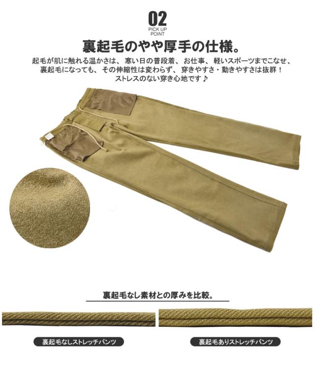 起毛が肌に触れる温かさは、寒い日の普段着、お仕事、軽いスポーツまでこなせ、ストレスのない穿き心地♪