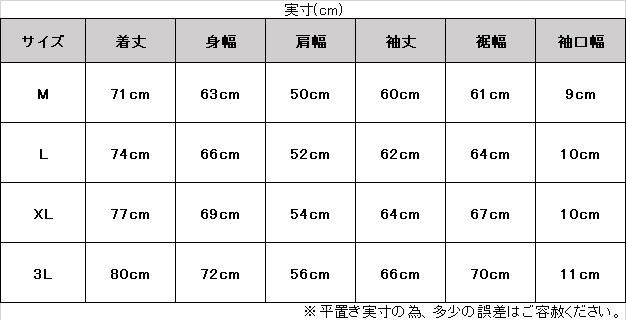 サイズ:身長 / チェスト / ウエスト
