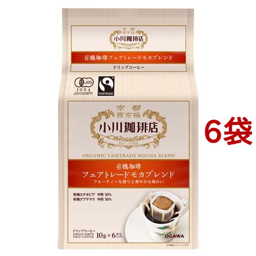 小川珈琲店 有機珈琲 フェアトレードモカブレンド ドリップコーヒー(10g*6杯分*6袋セット)[ドリップパックコーヒー]
