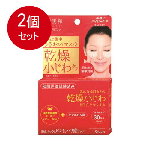 乾燥小じわを目立たなくする目もと用の美容液マスクです(効能評価試験済み)。気になる目もとをピンポイントケア、乾燥小じわを目立たなくします。ゴールドレチノールEX(レチノール誘導体+ローヤルゼリー+オウゴンエキス)、ヒアルロン酸配合。毎日使える30回分(60枚入)です。乾燥小じわを目立たなくする肌美精リンクルシリーズ