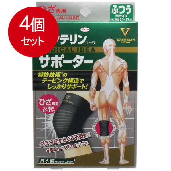 【4個まとめ買い】 バンテリンサポーター ひざ専用 ふつう(Mサイズ) ブラック 1枚入 送料無料 × 4個セット