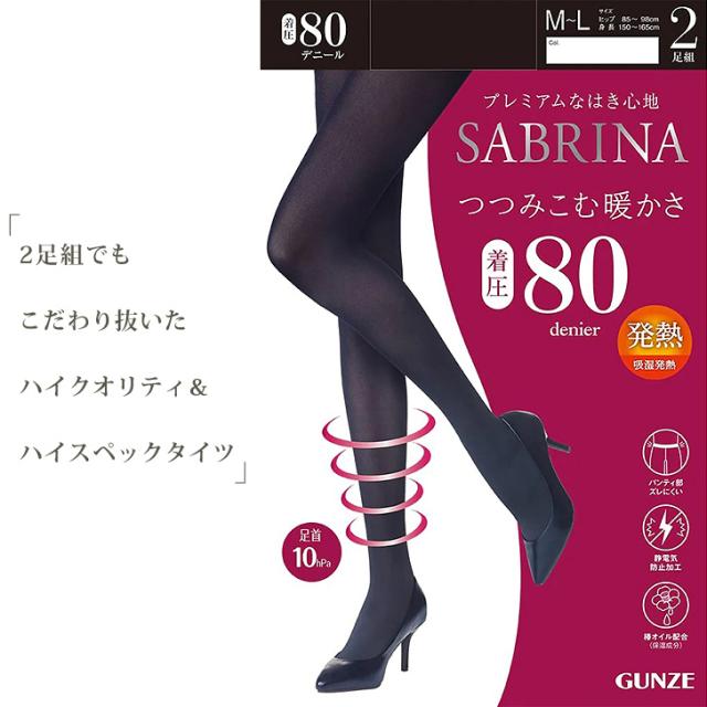 新作 タイツ 2足組 2枚セット レディース 80デニール 黒 ブラック 着圧 吸湿発熱 暖かい あったか 抗菌 防臭 グンゼ サブリナ SBG23
