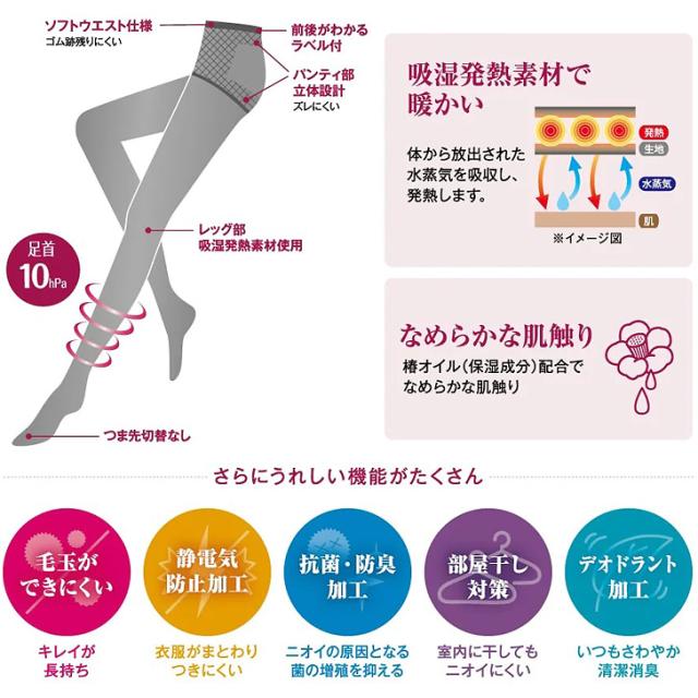なめらかな肌触りで、レッグ部分に吸湿発熱素材を使用しているので暖かい◎