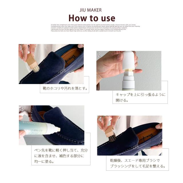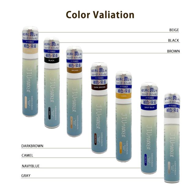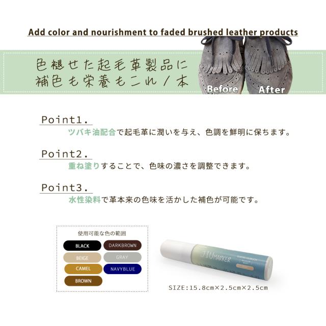 色褪せた起毛革の色を補い、潤いを与えるマーカーです。