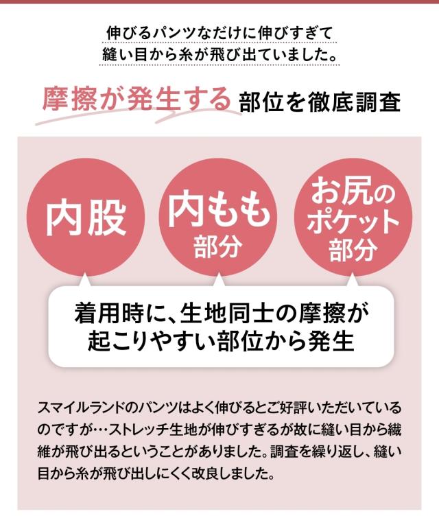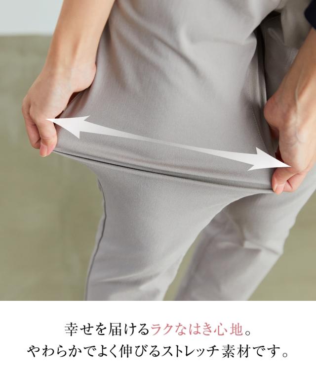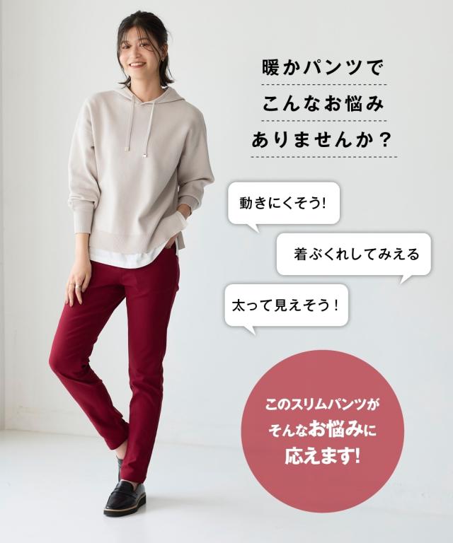 【スマイルランドで一番売れてる!大人気超ストレッチパンツの冬素材が新登場!】 スマイルランドからこの冬、最高傑作のストレスフリーな超ストレッチパンツが新登場☆ とっても柔らかくグーンと伸びるレーヨン混超ストレッチスリムパンツ。 履いていることを忘れるくらい・・・脚に柔らかくフィットする心地のよさは、一度体験したらクセになりそう!驚異のストレッチ性でストレスフリー。 更に冬のプチストレスであるごわつきを抑え軽い着心地に☆ シルエットはすっきり見えて脚のラインを隠してくれるスリムシルエット! お好みのサイズでシルエットも自由自在に! スリムパンツは摩擦がたくさんするので毛玉にも強い素材を使用☆ またウエスト総ゴムのプルオン仕様で着脱がラクチンなように裾にもストレッチ性をプラス。ウエストの内側にはひも付きなのでずれにくい仕様に。 欲しいを詰め込んだこのパンツを履くと普通に戻れなくなること間違いなし! 冬一押しパンツを是非肌で感じてください!!!! 少しでも多くのお客様にご購入いただきたいのでお値段もプチプラでご提供☆ 普段使いに使いやすいベーシックカラーと今期マストカラーのニュアンスカラーをご用意!