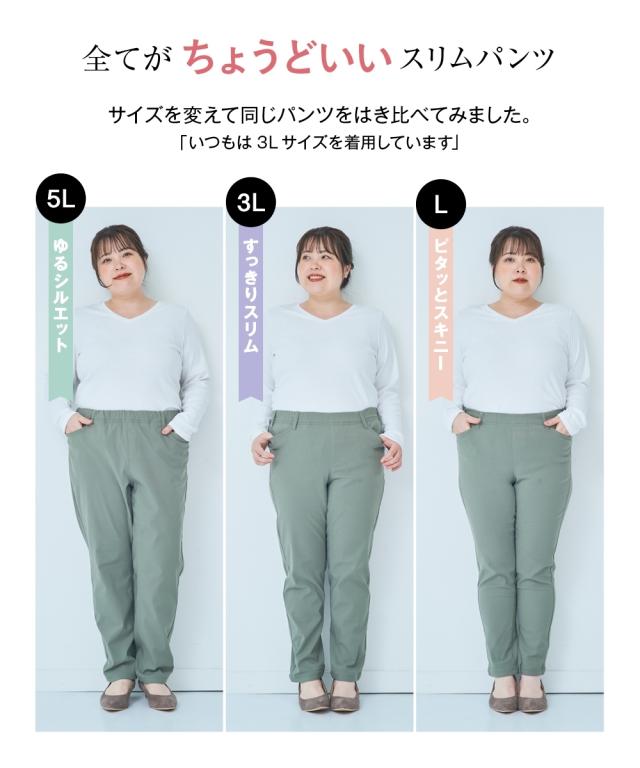 パンツ スキニー スリム 大きいサイズ レディース 超 ストレッチ 裏起毛レーヨン混スリム ゆったり太もも 股下68cm 冬 6L/8L/10L ニッセン nissen