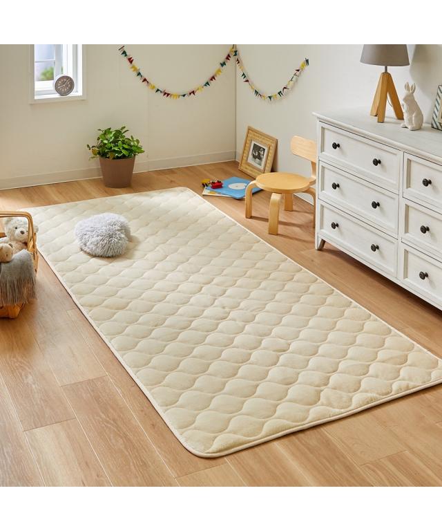 品質:表面=ポリエステル100%、中材=ポリエステル100%、裏面=不織布(滑りにくい加工付) ※ホットカーペットカバーにもご使用いただけます。(床暖房可) ※一部縫込みラベルに「床暖房にはご使用できません」と記載がございますが、耐熱試験での品質確認はできておりますので、床暖房にもご使用いただけます。 原産国:中国製 洗濯表示:洗濯機OK ネット使用