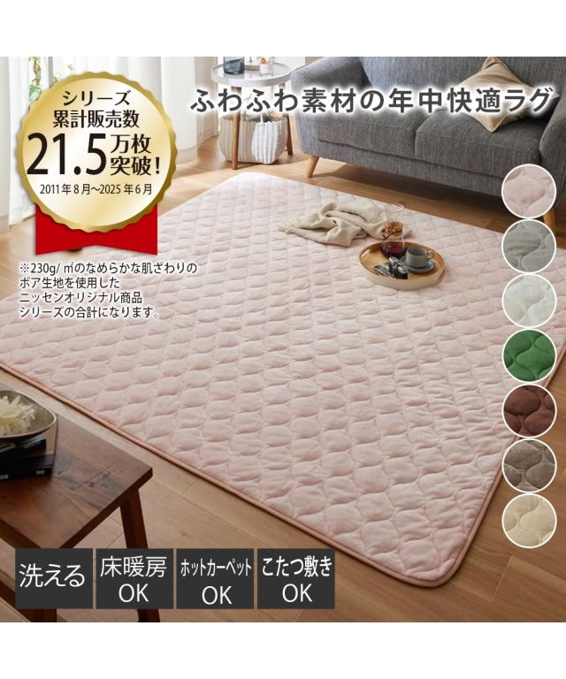 ラグ 洗える ふんわり カラー キルトボアラグ 約130×185 5mm ニッセン nissen