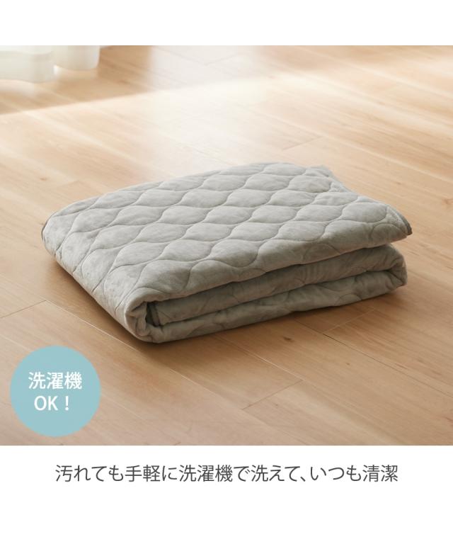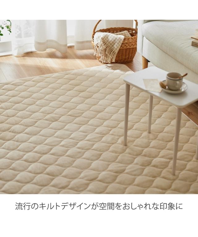 品質:表面=ポリエステル100%、中材=ポリエステル100%、裏面=不織布(滑りにくい加工付) ※ホットカーペットカバーにもご使用いただけます。(床暖房可) ※一部縫込みラベルに「床暖房にはご使用できません」と記載がございますが、耐熱試験での品質確認はできておりますので、床暖房にもご使用いただけます。 原産国:中国製 洗濯表示:洗濯機OK ネット使用