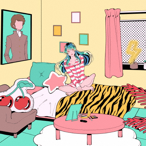「うる星やつら」のキャラクター・ラムが6畳半の部屋に入居した姿が描かれています。