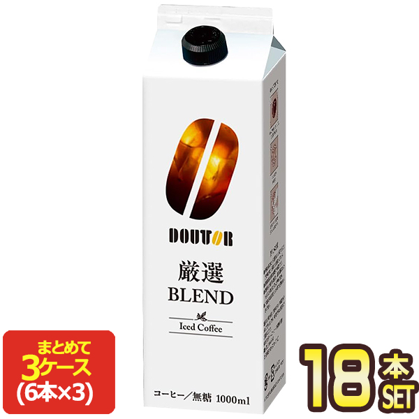 [送料無料] ドトール アイスコーヒー 無糖 1L×18本[6本×3箱]【4〜5営業日以内に出荷】