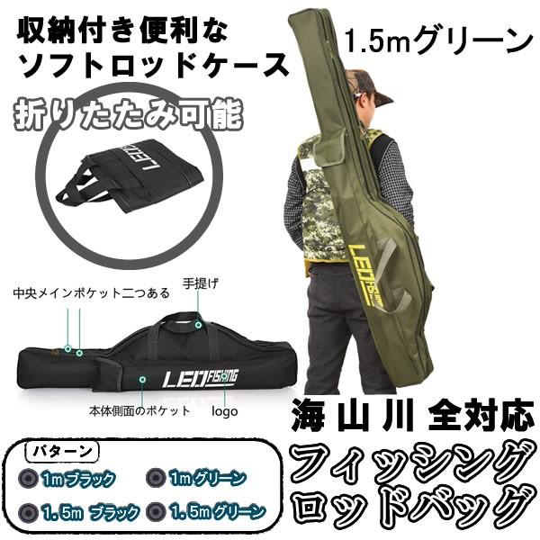 フィッシングロッドケース ロッドバッグ ロッドケース 1.5m グリーン 畳める ソフトケース 釣り フィッシング 釣り竿 釣り竿ケース 釣りバッグ FRCASE-15-GR