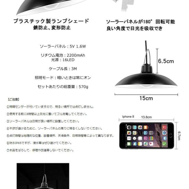 分離型LEDソーラーライト 昼白色 ペンダントライト リモコン付き 常夜灯 吊り下げ 夜間自動点灯 IP65防水 太陽光発電 ガーデン 夜間 庭 家 雰囲気防災 災害 BURADAN-SIRO