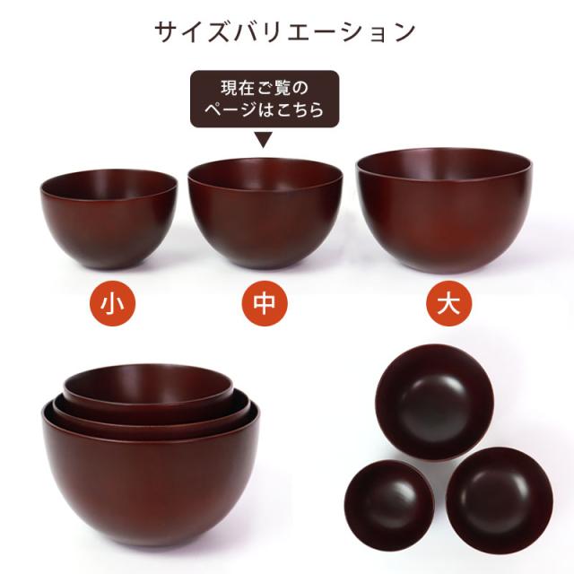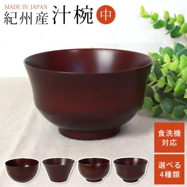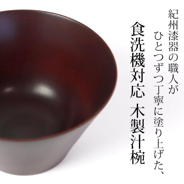 紀州漆器の職人が1点ずつ丁寧に塗り上げた、食洗機対応のお椀の中サイズです。