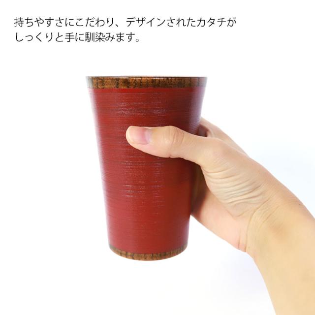 カップ 天然木製 コップ タンブラー 刷毛目 内スリ 根来 曙 漆塗り おしゃれ モダン 軽量 軽い 割れにくい 和 赤 レッド 黒 ブラック うるし塗り 漆器