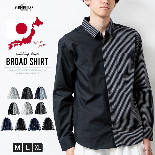 シャツ メンズ 長袖 切替 ストライプ 長袖シャツ 国産 ブラウス ワイシャツ ボーダー メンズシャツ GWA2085