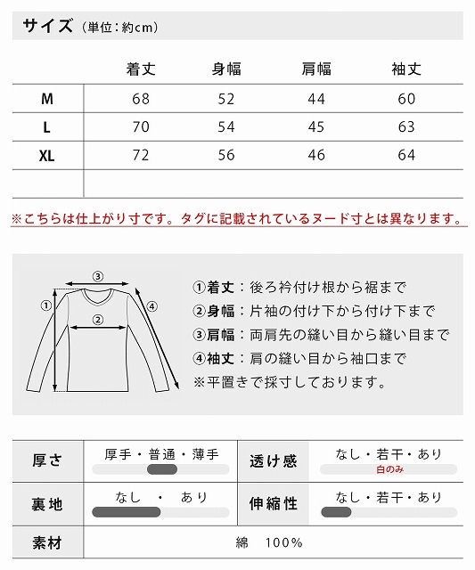 | サイズ | 着丈 | 身幅 | 肩幅 | 袖丈 |