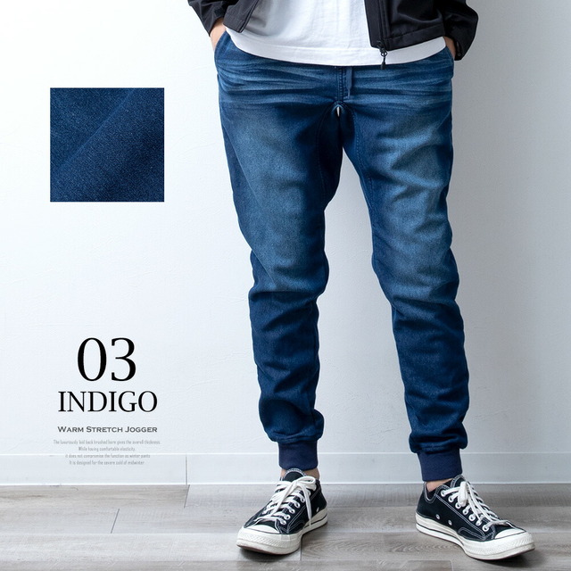 ジョガーパンツ メンズ 裏起毛 ストレッチ 蓄熱 暖かい ジョガー パンツ 裏フリース ジョグパンツ 秋冬 部屋着 ルームウェア デニム チノ ゴムウエスト 暖パンツ 全6色 HEF シンプル 無地 黒 M L LL XL 大きいサイズ