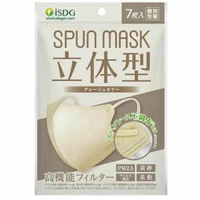 医食同源 立体型スパンレース不織布カラーマスク グレージュ 個包装 7枚入