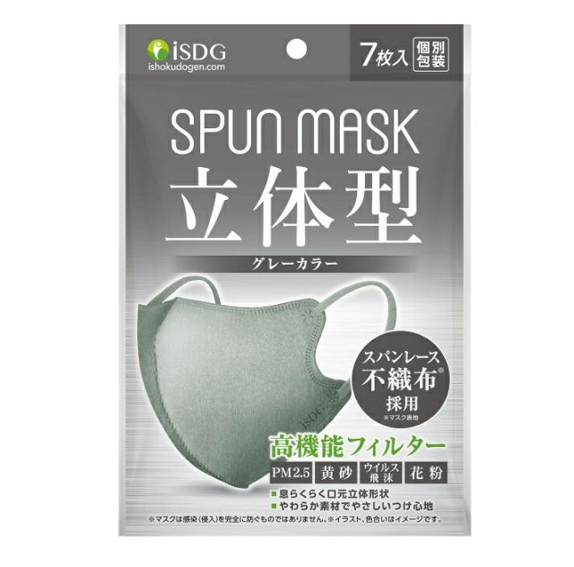 【10個セット】 医食同源 立体型スパンレース不織布カラーマスク グレー(7枚入)×10個セット