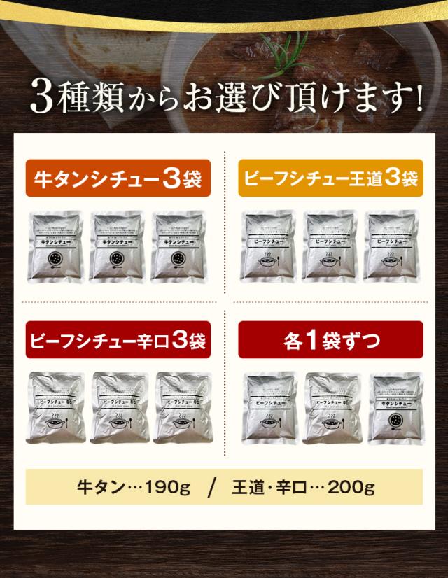 メール便 送料無料 選べる 牛タンシチュー 3袋 ビーフシチュー 辛口 牛タン 牛たん シチュー 食べ比べ 食品 レトルト ご飯のお供 牛肉 デミグラス ソース 常温 非常食 おつまみ おかず 日持ち ポイント消化 訳あり [メール便]