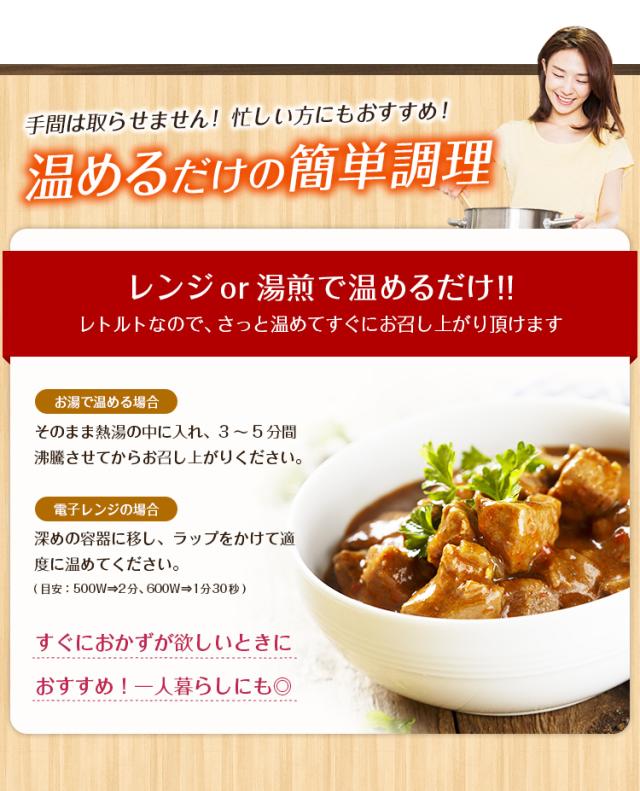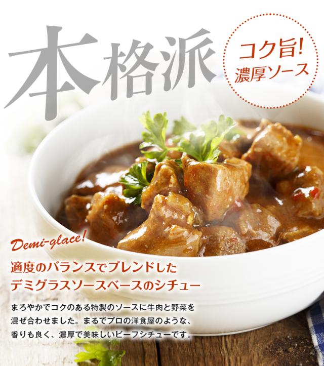 原材料名:牛肉(国産)、たまねぎ、デミグラスソースルウ(小粉、ラード、砂糖、食塩、香辛料、その他)、ウスターソース、トマトペースト、植物油脂、砂糖、おろしにんにく、牛だし風味調味料/着色料(カラメル、パプリカ色素)、調味料(アミノ酸等)、酸味料、香料(一部に小麦・乳成分・牛肉・大豆・豚肉・ゼラチンを含む)