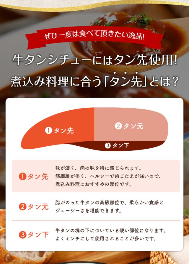 原材料名:牛タン(輸入)、たまねぎ、デミグラスソースルウ(小麦粉、ラード、砂糖、食塩、香辛料、その他)、ウスターソース、トマトペースト、牛脂、砂糖、植物油脂、おろしにんにく、牛だし風味調味料/カラメル色素、調味料(アミノ酸等)、酸味料、(一部に小麦・乳成分・牛肉・大豆・豚肉・ゼラチンを含む)※特定原材料7品目のうち、小麦を含みます。