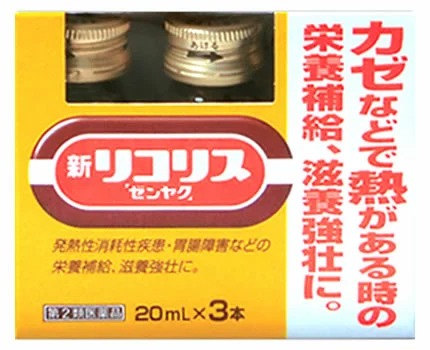 新リコリス「ゼンヤク」は、甘い生薬・カンゾウ(甘草)エキスを配合した発熱性消耗性疾患時などの場合の