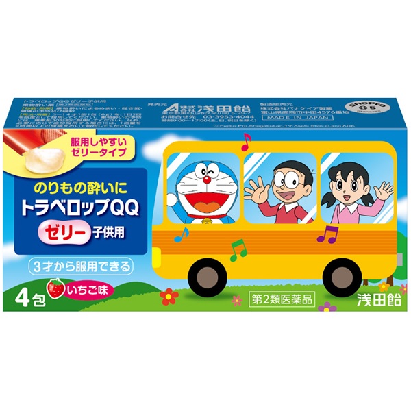 3才から服用できるゼリータイプで、楽しい遠足など外出先でも服用しやすいスティック包装の「乗物酔い薬」です。