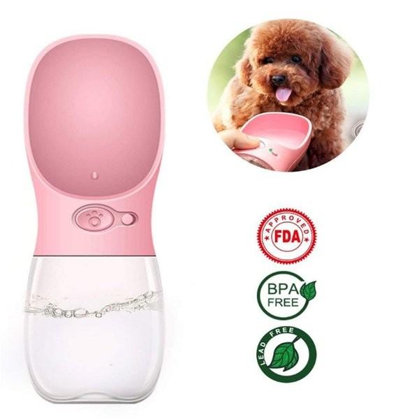 給水器 犬 ボトル 携帯用 ピンク 350ml ペット ウォーターボトル 水槽付き 水漏れ防止 BPAフリー 犬猫 散歩 旅行用品 携帯便利 衛生的 軽量タイプ WATER FOUTAIN