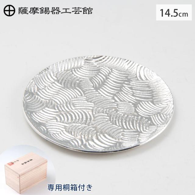 薩摩錫器 銘々皿 丸型 14.5cm 桐箱入り 岩切美巧堂 1300-3【錫製 食器/錫 皿/丸皿/鹿児島県 伝統工芸品 日本製/送料無料】
