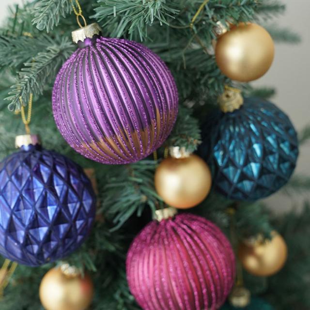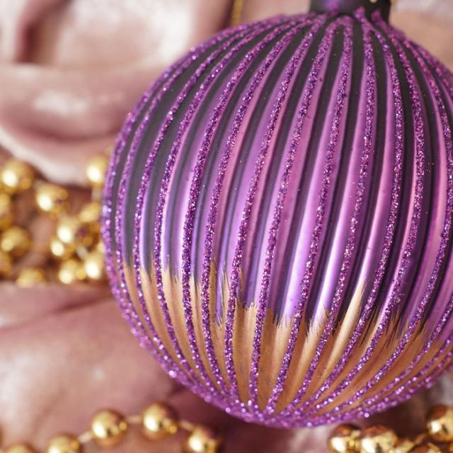 色鮮やかなパープルをマットに仕上げたおしゃれなボールオーナメント
