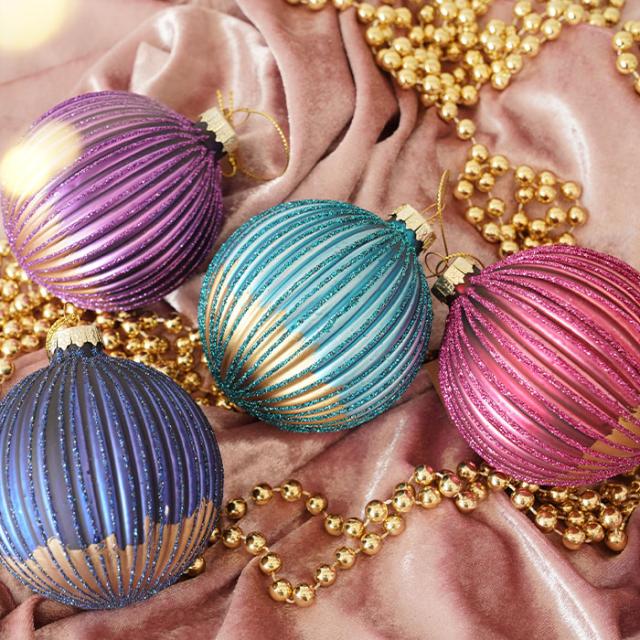 ★色鮮やかなパープルをマットに仕上げたおしゃれなボールオーナメント。 細いストライプが繊細かつスタイリッシュな雰囲気を醸し出します。 艶を抑えたシックなデザインで色馴染みが良く、クリスマスツリーを華やかさもありつつ大人の余裕漂うエレガントな印象に仕上げてくれます。 季節を問わないデザインなので、クリスマスシーズン以外でも日常のインテリアとしてお楽しみいただけます。 カラー違いもご用意しています。 標準サイズの8cmボールです。 |