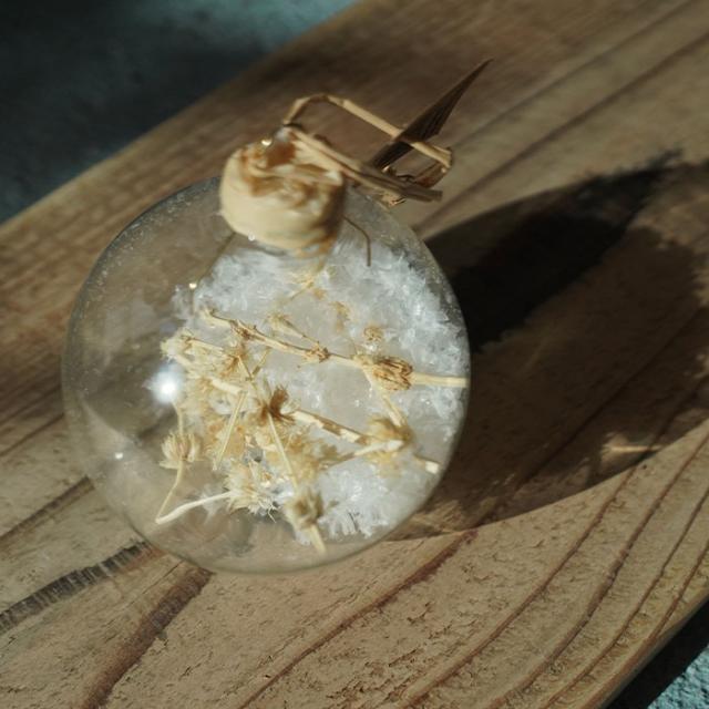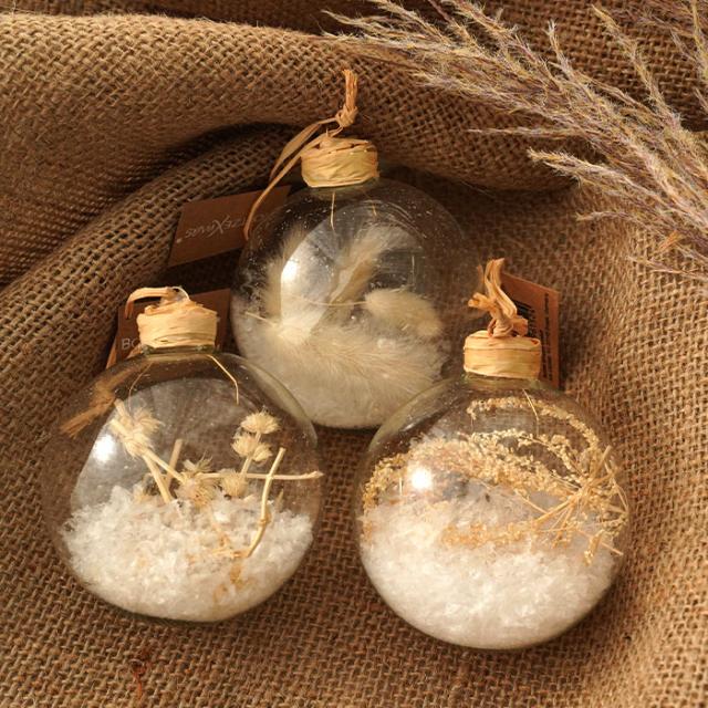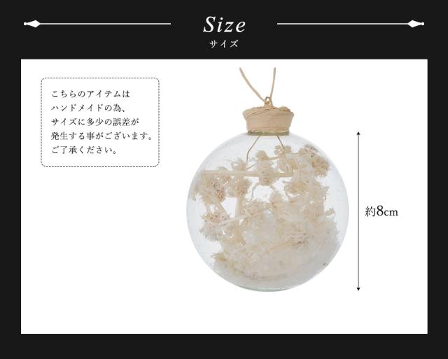 ドライフラワー入りでナチュラル感たっぷりなガラスボールオーナメントです。