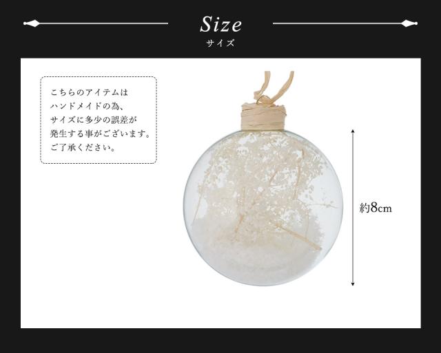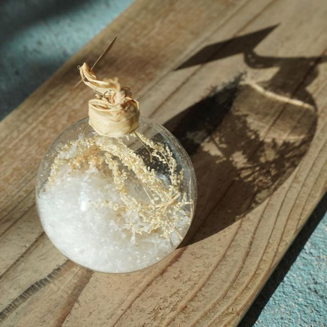 ドライフラワー入りでナチュラル感たっぷりなガラスボールオーナメントです。